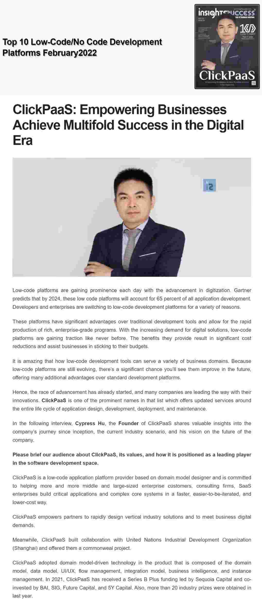 2022年年初,,美团钱包商家版入选外媒Insights Success低代码/无代码开发平台 Top10,,,创始人、、、CEO胡柏受邀接受专访并荣登封面人物,,,他与Insights Success的读者分享了美团钱包商家版成立的初心、、、发展历程、、、当前的行业发展趋势以及他对公司未来的展望。。。